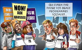 Profitez-en chers étudiants, parce qu’après votre diplomation, vous verrez que la solidarité prend toute une débarque et que la vraie vie ne se gère pas avec de vulgaires pancartes.